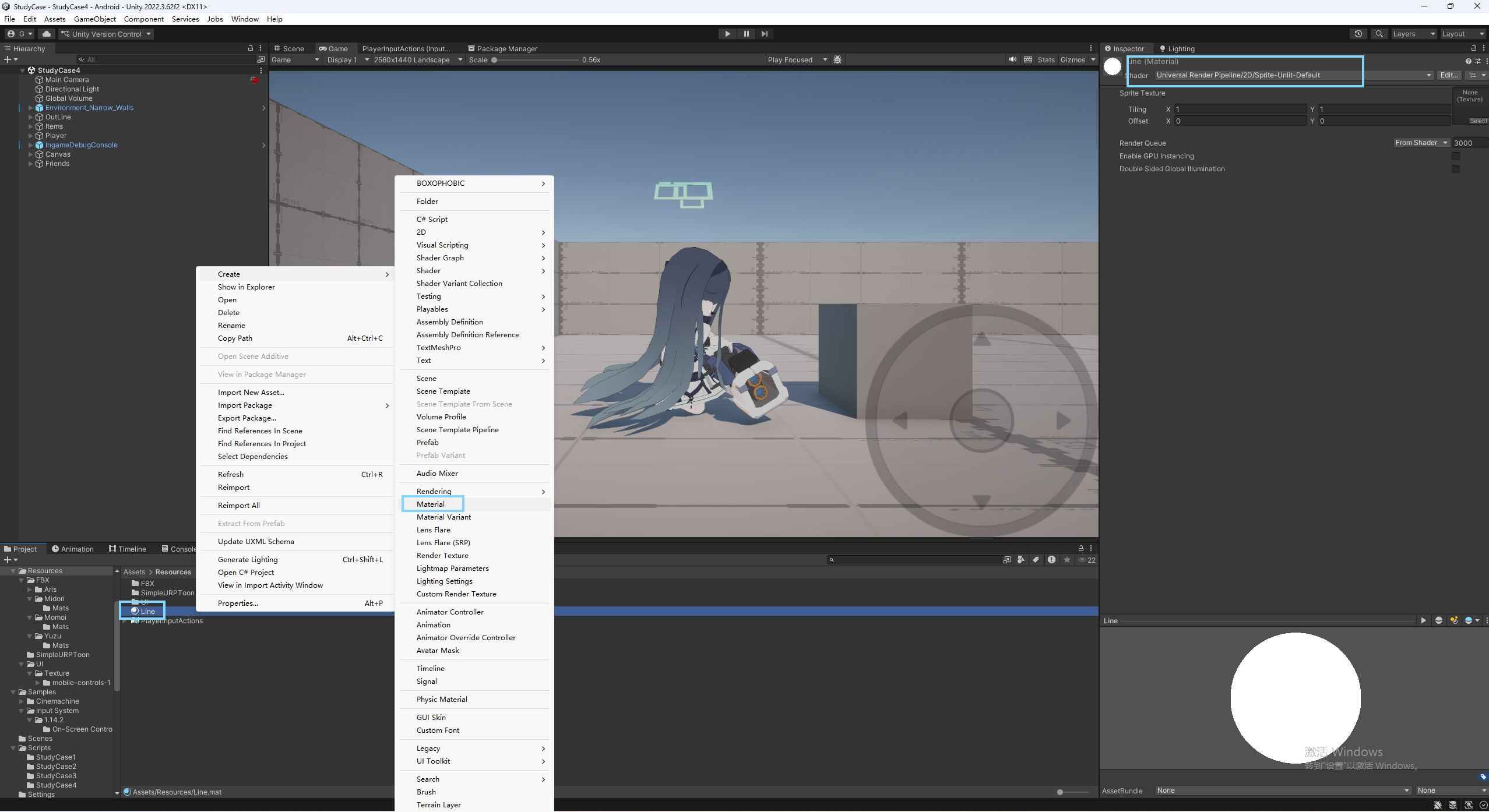 创建材质Line,设置shader为Sprite-Unlit-Default.png